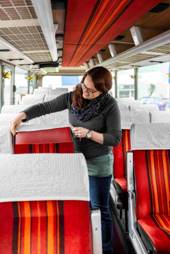 Wer als unbefangener Fahrgast in den 1981er-Saurer-Oldtimer einsteigt, kann bald verstehen, woher die Faszination der beiden Neo-Bündner für das Thurgauer Fahrzeug kommt: Der Saurer RH hat Charakter und – ja – Würde. Rote Sessel mit weissen Kopfstützenschonern, ein Dachhimmel im gleichen Rot, grosse Aussichtsfenster, Blumenvasen aus Metall bei jedem Sitz. «Während seiner Zeit bei der damaligen PTT diente er sogar offiziell als Bundesratsbus – für den jährlichen Ausflug der Landesregierung», sagt Andreas Ackermann stolz. Aber der RH, von dem in dieser Ausführung nur 18 Stück hergestellt wurden, war auch ein echtes Arbeitstier: «Wenn ein anderes Postauto liegen blieb, wurde er gerne auch mal als Abschleppfahrzeug eingesetzt.»