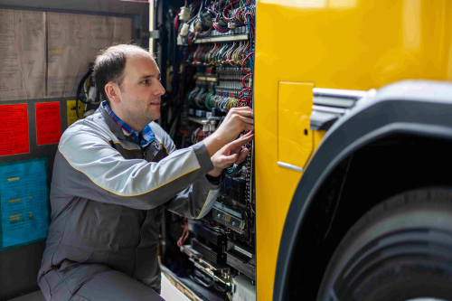 Neben dem Fahrersitz fällt ein seltsames Gerät mit Kurbel auf, das nur noch Ältere kennen: eine Billettmaschine. Nichts elektronisch, alles mechanisch. Dafür funktioniert das Teil seit über einem halben Jahrhundert einwandfrei. Genau wie das Postauto selbst: «Seit 44 Jahren derselbe Motor, kein Rost, keine gröberen Probleme – und auswechseln mussten wir bis jetzt nur Verschleissteile», sagt Eveline Ackermann. Diese sind allerdings nicht immer leicht zu finden. Ein Originalscheinwerfer, ein elektrischer Schalter aus den fernen 1980er-Jahren – solche Teile gibt es offiziell längst nicht mehr. «Zum Glück sind wir nicht die Einzigen, die sich um die Postauto-Oldtimer kümmern – es gibt sogar verschiedene Vereine. Manchmal kann dann ein Kollege aushelfen, aber es wird immer schwieriger.» Allein die elektrische Schalt- und Steueranlage für Türen, Blinker, Lüftung und Licht ist mehr als einen Quadratmeter gross. Heute hätte das Ganze wohl auf einem einzigen Chip Platz.